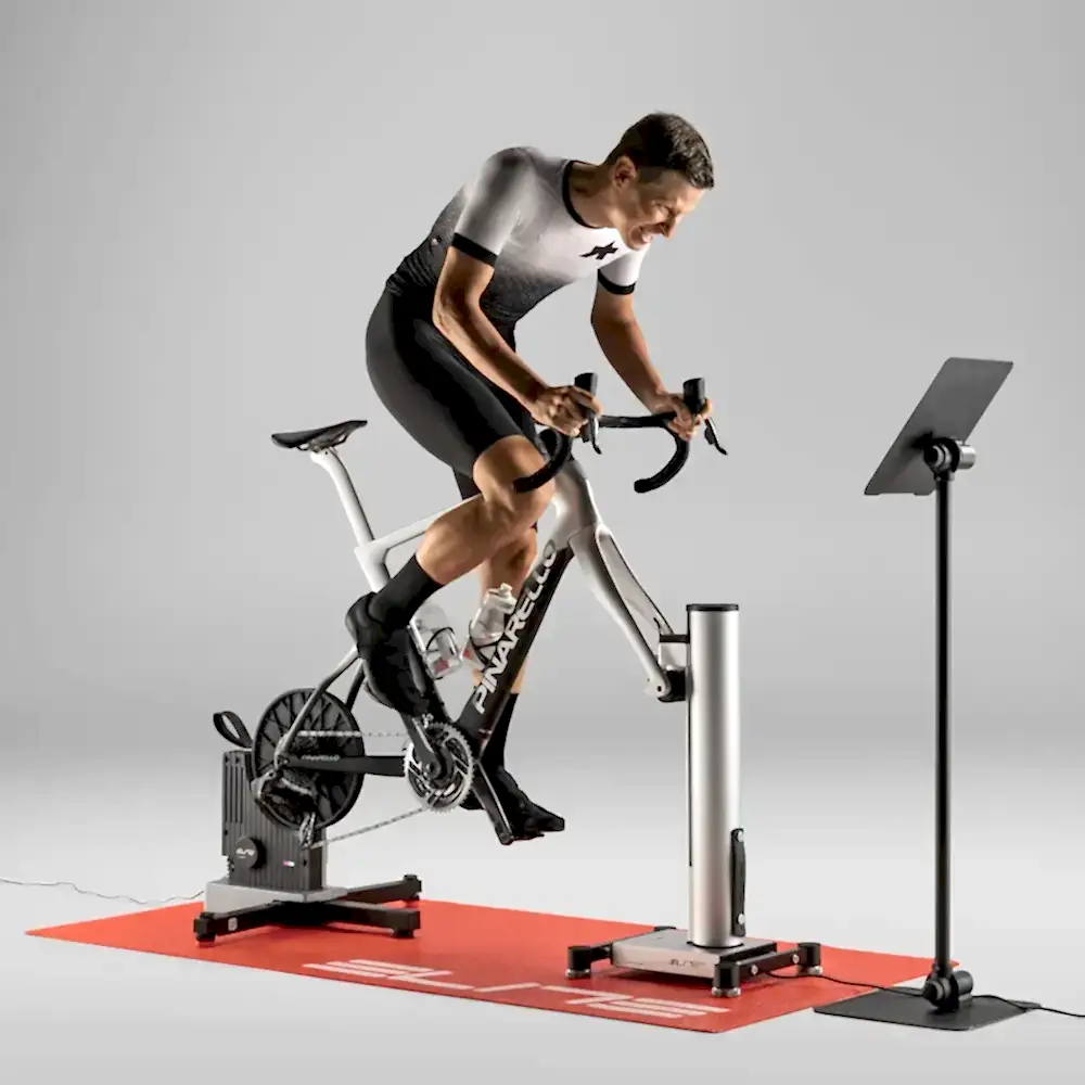 Elite'in Rizer eğim simülatörünü direksiyonla entegre ederek gerçekçi bir sürüş deneyimi yaşayın; bisikletinizin eğimini gerçek dünya arazilerine uyacak şekilde ayarlar. Bu sürükleyici kurulumu tamamlayan şey , Elite'in uyarlanabilir akıllı fanı Aria'dır . Aria, performans verilerinize göre hava akışını gerçek zamanlı olarak ince ayarlayarak motive edici ve konforlu bir sürüş sağlar. Passo dello Stelvio veya Mont Ventoux gibi efsanevi tırmanışlarda kendinize meydan okuyun!