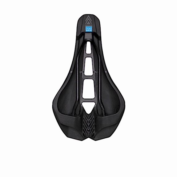 Karbon raylar üzerine yerleştirilmiş ve hafif EVA dolgu ile kaplanmış karbon takviyeli bir polimer taban, pürüzsüz bir PU kaplama ile kaplanmış, sert bir performans eyeri oluşturur; 142 ve 152 milimetre genişliğindeki versiyonları mevcuttur. İkonik üçlü köprü tasarımına sahip geniş, çıkıntılı burnu ve geniş anatomik oturma girintisi, esnek sürücülerin pelvisten derin, takip tarzı bir konuma eğilebilmesini sağlar.
