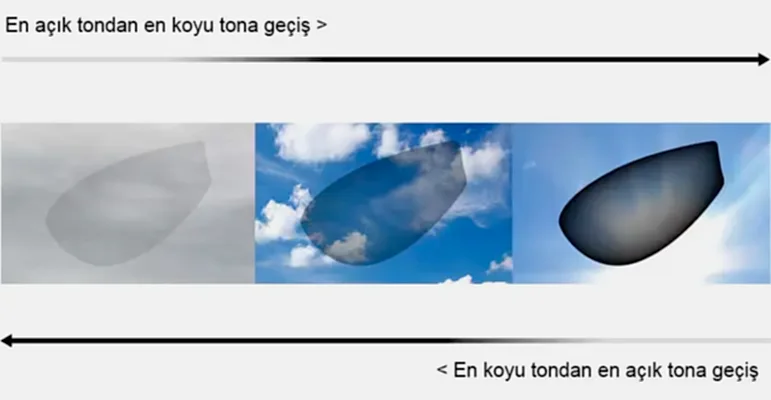 Fotokromik (PH) lensler UV ışığına maruz kaldığında görünür ışık iletim yüzdelerini otomatik olarak değiştirir, böylece sürücülerin ışık koşulları değiştiğinde durup lensleri değiştirmesine gerek kalmaz. Çevre karanlık olduğunda lensler neredeyse şeffaftır. Hava aydınlık olduğunda lensler daha koyu bir renge döner.