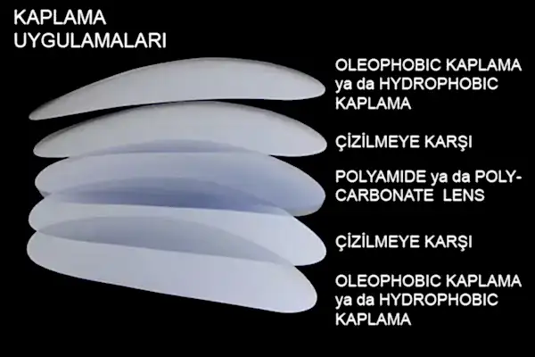 Oleofobik kaplamalar, lenslerin daha berrak ve temiz kalmasına yardımcı olmak için yağları ve suyu iter. Bu kaplama ayrıca parmak izi lekelerini ve lens lekelerini azaltır.